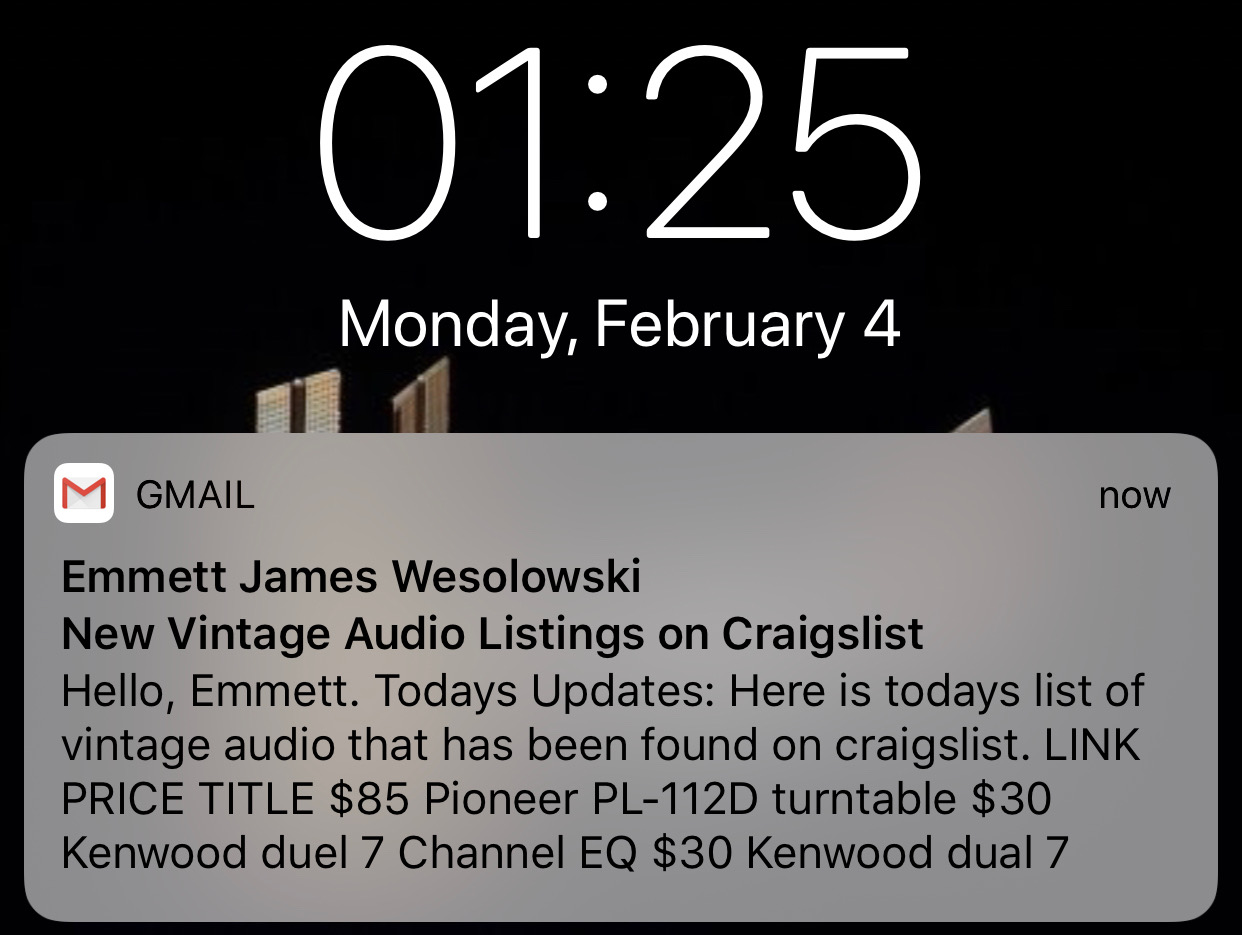 Python web bot that automatically searches a local craiglist for items based on specified parameters. I originally built this to find deals on vintage audio equitment.