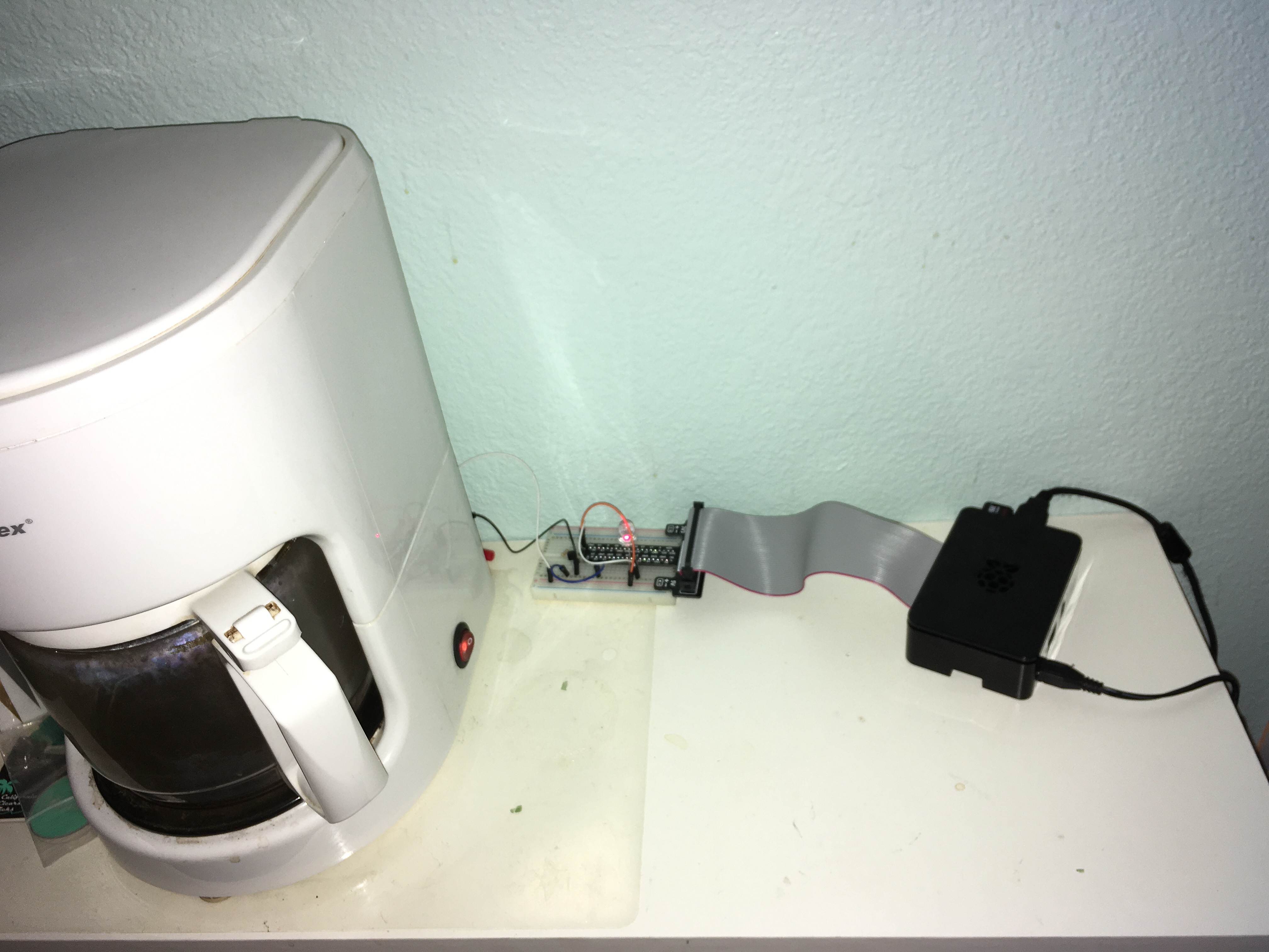 Check it out here!I hacked a basic coffee maker to brew coffee on command through a Raspberry Pi with Python scripts and Node.js server.